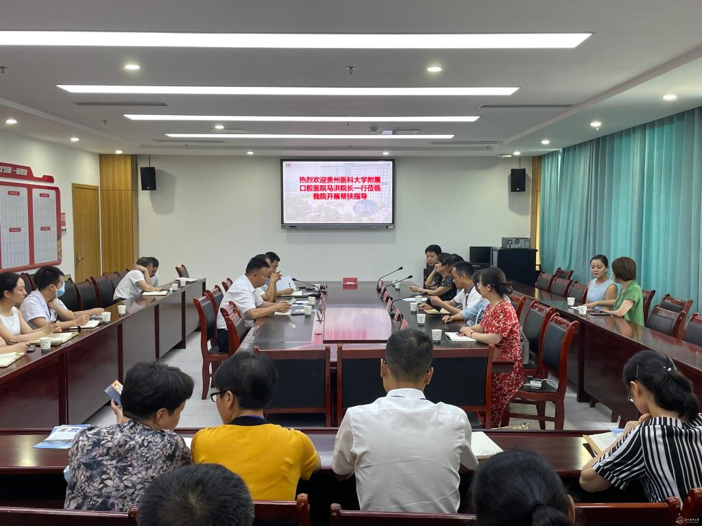 7月20日,口腔医院党委副书记、院长马洪带领相关科室人员前往金沙县人民医院召开交流座谈会,并签约金沙县人民医院为口腔医院专科联盟单位。金沙县人民医院党委书记、院长赵勇,党委副书记、副院长曾阳,党委委员、纪委书记王启铸,党委委员、副院长胡磊,副院长罗定宇及相关部门负责人参加。