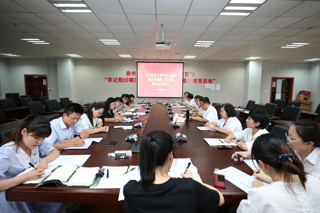 7月20日,为全面落实新时代党的建设总要求,切实推进机关党委基层党支部书记党建工作联系点制度,组织部党支部和成人继续教育学院职工党支部在知雨楼413会议室开展联合主题党日活动。活动由成人继续教育学院党支部书记袁芳主持,组织部党支部、成人继续教育学院党支部全体党员参加。