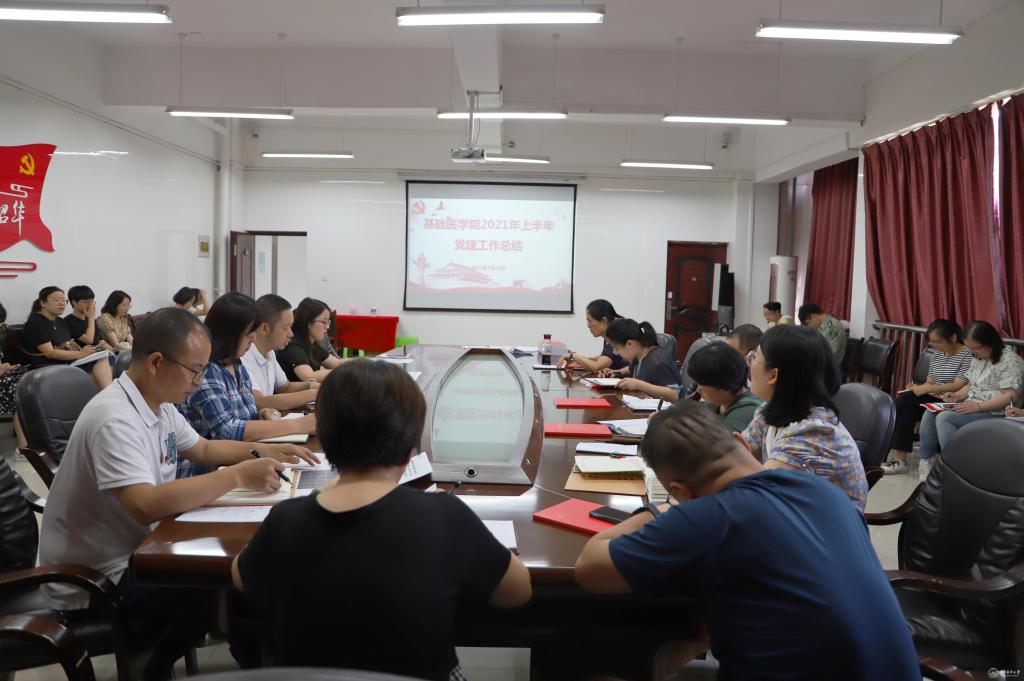 7月21日,基础医学院党委在务本楼会议室召开2021年上半年党建工作总结会。学院党政领导,各党支部书记、支委参加。会议由正处级组织员孟立科主持。