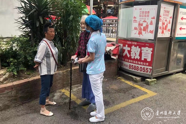 7月22日中午,一名87岁高龄口腔黏膜病女患者就诊,老人自诉口腔内疼痛难忍,没有家属及亲戚朋友陪伴,也无法联系其居住社区工作人员,并已感到手脚冰冷、发麻,口腔医(学)院一站式服务中心的导诊护士吕灿灿、苏运云一边悉心照料、安抚,贴心陪伴患者等待就诊;一边积极联络院总值班和巡查工作人员,安排牙周黏膜科医生靳大力优先处理,并全力协助完成诊治。考虑到老人年龄大、身体状态不好、行动不便,苏运云和汪雪慧将老人安全送回家中。