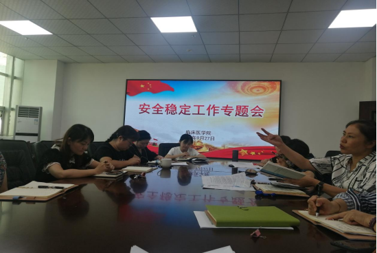 9月27日,临床医学院在北校区召开安全维稳工作专题会,会议由院党委书记周红主持,全体人员参加。