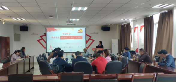 10月15日,后勤管理处党总支副书记周云蓉在南校区颂雅楼五楼后勤会议室以《牢记初心确保党性不变质 不变色 不变味》为主题,讲授专题党课。党课由后勤党总支委员、办公室主任赵杨主持,全体党员参加。