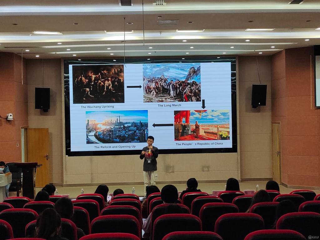 比赛分为选手演讲、评委点评、现场颁奖三个环节,选手们以“Red Star Over China”为主题,用流利的英语表述了自己的独特见解与思考,演讲内容丰富、紧扣主题,一个个红色故事还原了历史,回顾了建党一百年来的峥嵘岁月。麻醉学院徐贺辰的演讲提及长津湖的故事,讲述了危难之际总有人愿意为国负重前行。口腔学院湛济帆同学从自身的角度出发,深刻地论述了青年更需承担肩上的责任,牢记爱国的初心与使命。选手们回答了现场提问,他们精彩的表现引得观众喝彩连连,掌声不断。外教老师Carter针对选手的演讲内容作细致点评和总结。