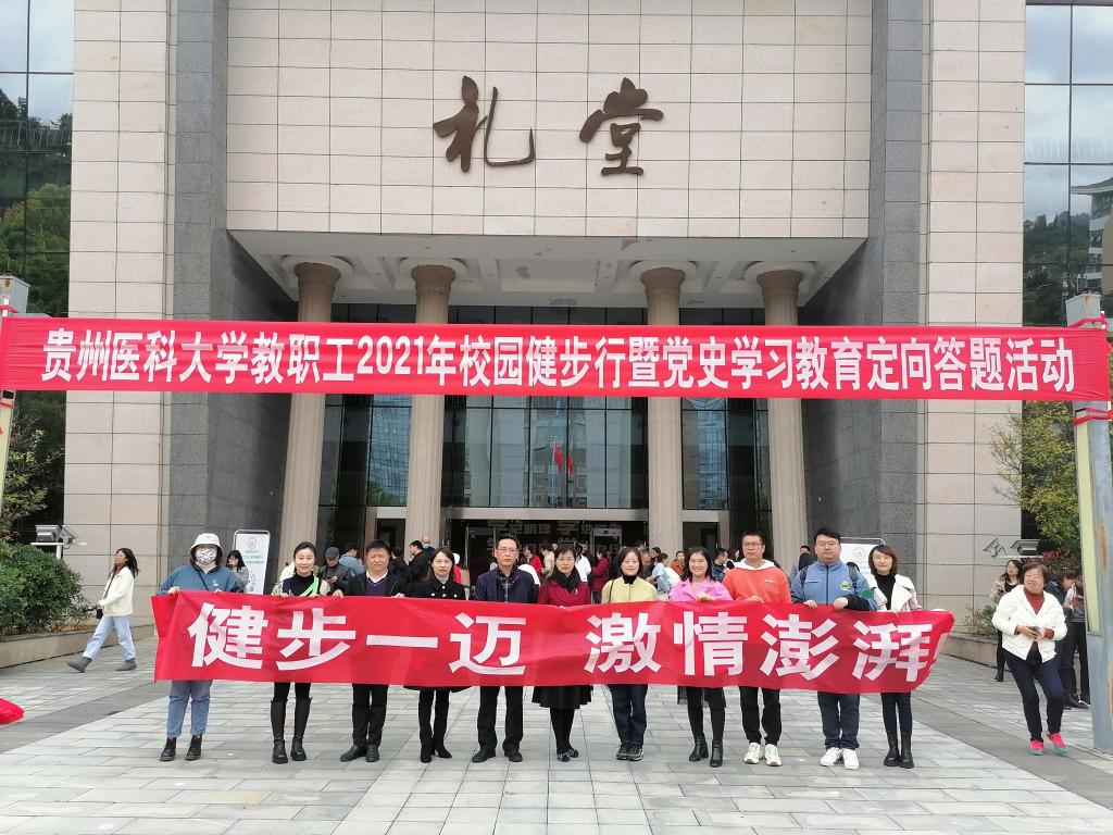 为深入开展全民健身和党史学习教育,在疫情防控常态化下,切实提高全校教职工身体素质与精神风貌,积极响应“健康中国”号召,10月21日中午,由校工会举办的beat365唯一官方网站2021年校园健步行暨党史学习教育定向答题活动在花溪校区举行。校党委委员、纪委书记陈代勇以及来自全校各分工会的数百名教职工参加。