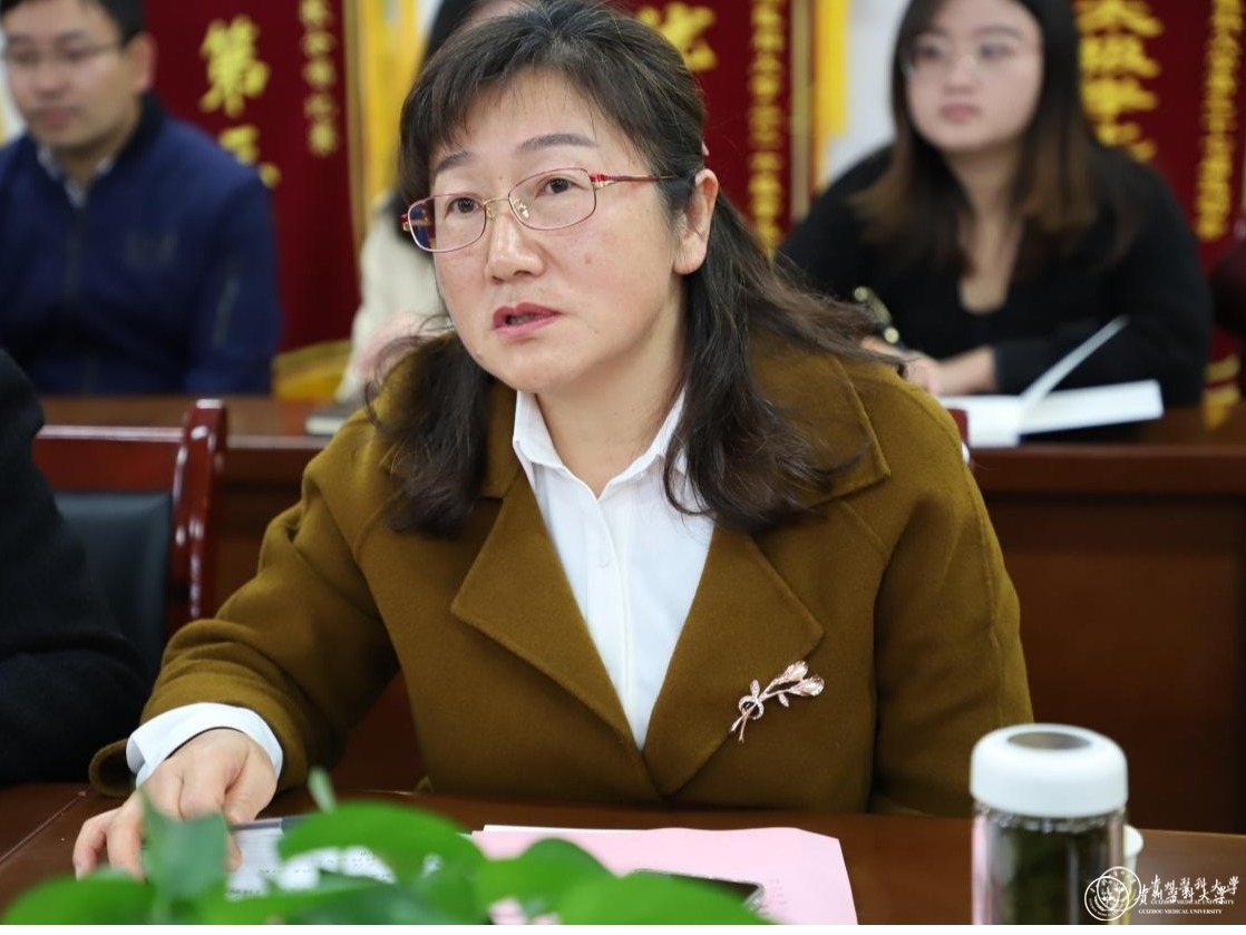 郭兵介绍学校及教育发展基金会发展历程,强调这是首次以学院为主体接受的捐赠,并对此表示感谢。