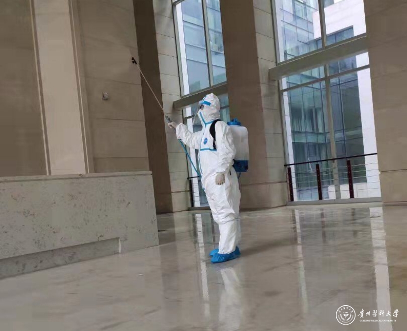 谯瑞,男,共青团员,beat365唯一官方网站公共卫生学院2017级预防医学专业学生,负责高危场所消杀保障工作、医护人员终末消毒工作。只要接到通知,谯瑞就要立刻穿起防护服,去公共区域进行消杀,顾不上吃午饭是常事。有时在凌晨,依然在争分夺秒的加班。但他表示,很明白现在是关键时刻,没有比大家的生命健康更重要的事情了。