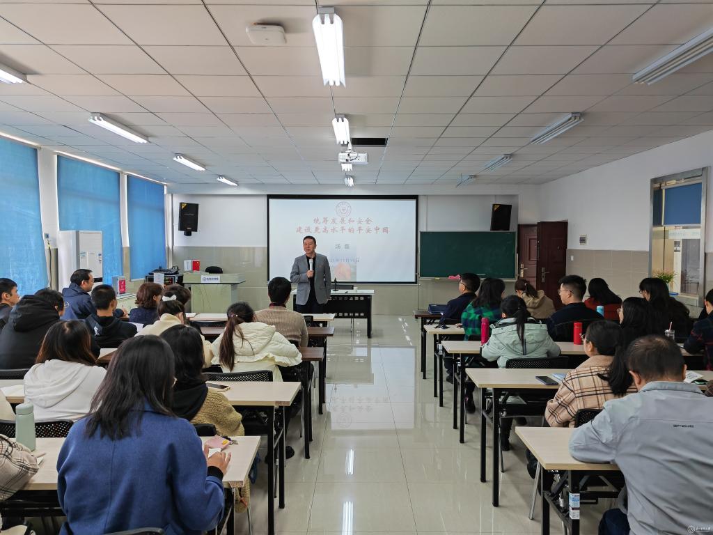 课上,汤磊首先阐明为什么要统筹发展与安全,从辩证的角度分析发展与安全之间的关系,并强调我们必须坚持统筹发展和安全,增强机遇意识和风险意识,树立底线思维,坚持总体国家安全观。其次分析了当前面临的重大风险类别,从风险意识的角度发人深思,从政治、意识形态、经济、科技、社会、外部环境、党的建设等领域,以及自然灾害和事故隐患等方面联系实际逐一深入说明安全问题。最后从安全部署的视角出发,从加强国家安全体系和能力建设、确保国家经济安全、保障人民生命安全、维护社会稳定和安全四大方面进行讲解。