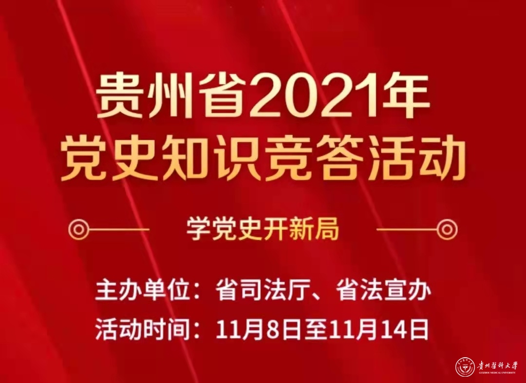 11月8日至11月14日,省司法厅、省法宣办举办的“贵州省2021年党史知识竞答”活动,校工会积极组织支部党员参加,并获得佳绩。