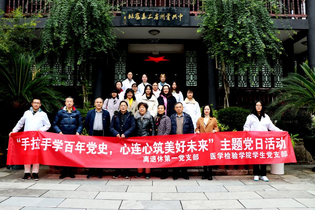 为推进党史学习教育,关心学生党员成长。11月18日,离退休第一党支部、医学检验学院学生党支部到中共贵州省工委旧址开展“手拉手学百年党史,心连心筑美好未来”主题党日活动。离退休第一党支部书记张晓林,医学检验学院党委书记彭安辉,正处级组织员杨飏,支部党员参加。