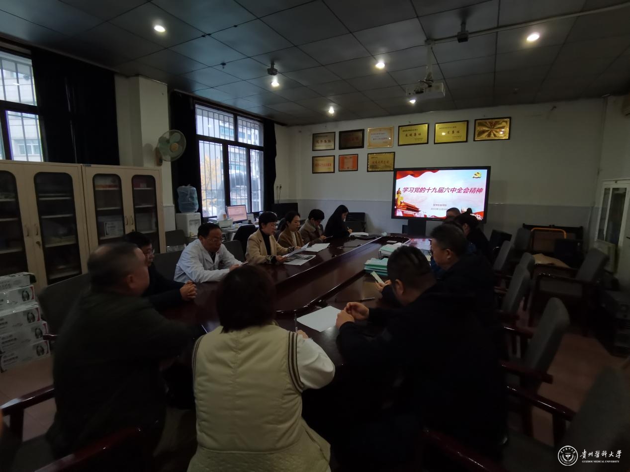 11月19日,医学影像学院党委在贵医大附院影像楼二楼会议室召开党委(扩大)会议,深入学习贯彻党的十九届六中全会精神。会议由党委书记李雪梅主持,党政领导班子成员、各部门、教研室负责人、支部书记、全体辅导员参加。