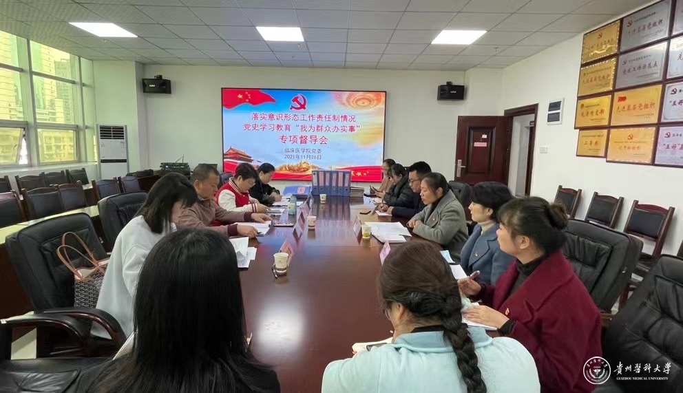 为全面落实意识形态工作责任制,加强意识形态工作管理,深入推进党史学习教育“我为群众办实事”实践活动走深走实。11月26日,贵州省中国科学院天然产物化学重点实验室副主任孙超、党办主任杨毅分别带队进行专项督导及党建工作检查,临床医学院党委书记周红、副书记王筑山及各科室负责人参会。