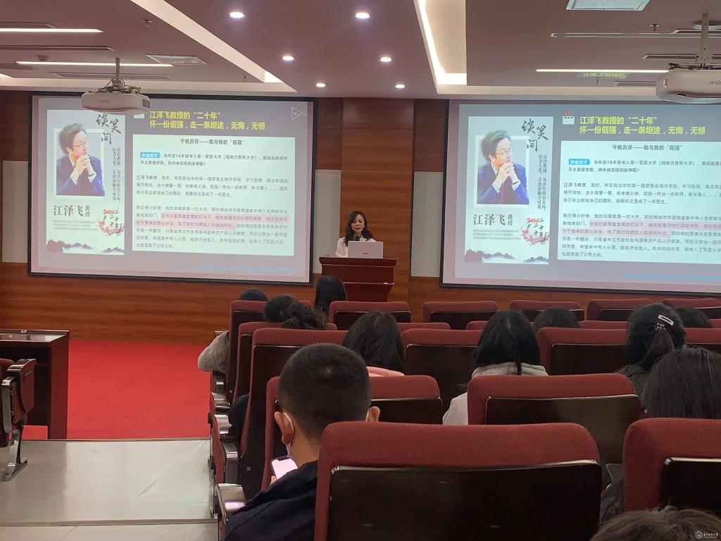 刘蜀以一段《外科医生的一天》视频为始,和同学们分享了医务工作者一天的工作内容。并通过介绍几位医学前辈的成长经历,将他们比喻为灯塔,勉励同学们要胸怀远大理想,不畏艰险,不怕辛苦,多读书、多实践、多思考。要乘风破浪,不断前行,不断地充实自己,提升自己,努力成为夜空中最亮的星。刘蜀还分享了自己的学医初心和成长感悟,并表示,医路漫漫,同学们既要仰望星空,也要脚踏实地,前辈们的成长故事,犹如黑夜里的灯塔,照亮你我的奋斗之路,终将指引同学们成长为一名真正的优秀的医生。