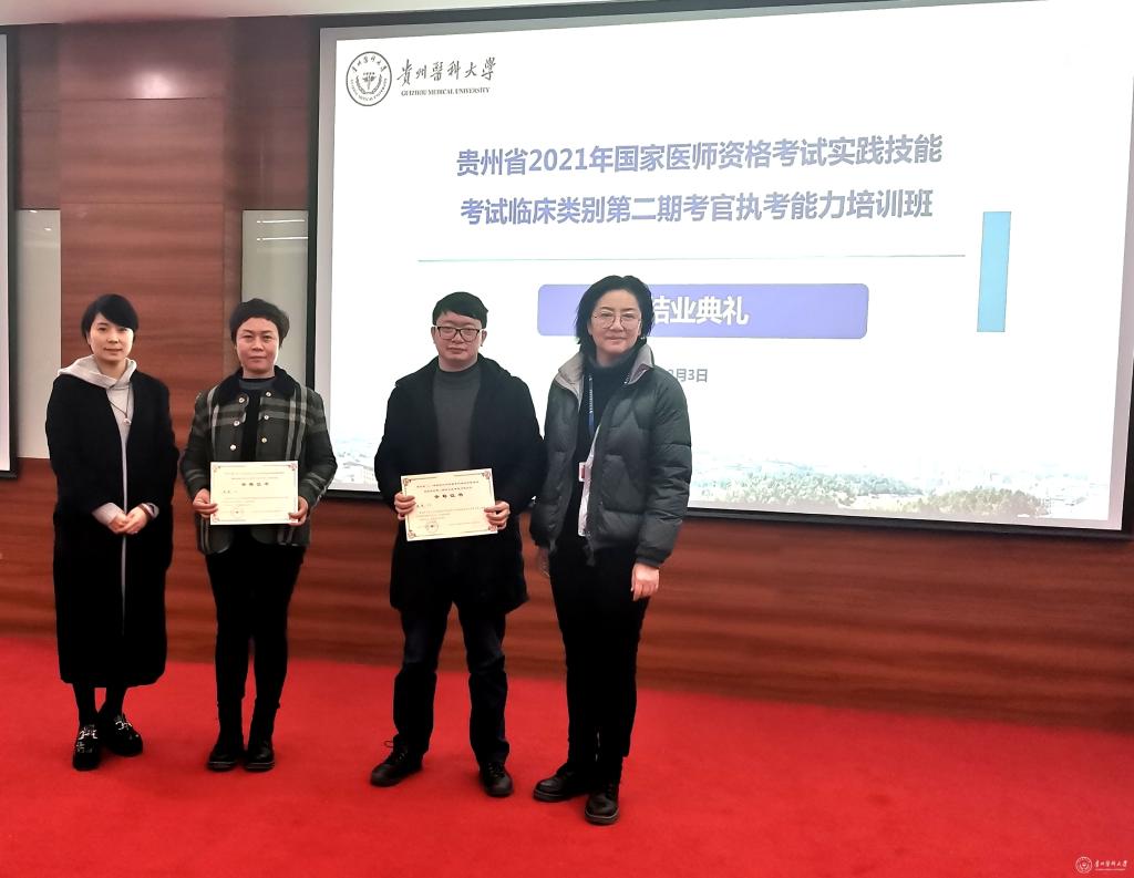 由贵州省卫健委医师资格考试领导小组办公室、贵州省卫生健康人才中心主办,beat365唯一官方网站附属医院/临床医学院承办的“贵州省2021年国家执业医师资格考试实践技能考试临床类别第二期考官执考能力培训班”落幕,来自全省5个地州市45家医疗机构的118名考官学员全部考核合格顺利结业。12月3日,在临床技能中心207会议室举行了结业典礼。beat365唯一官方网站附属医院副院长、临床医学院常务副院长楚兰及临床医学院党委副书记王筑山参加,由临床医学院副院长戚璐主持。