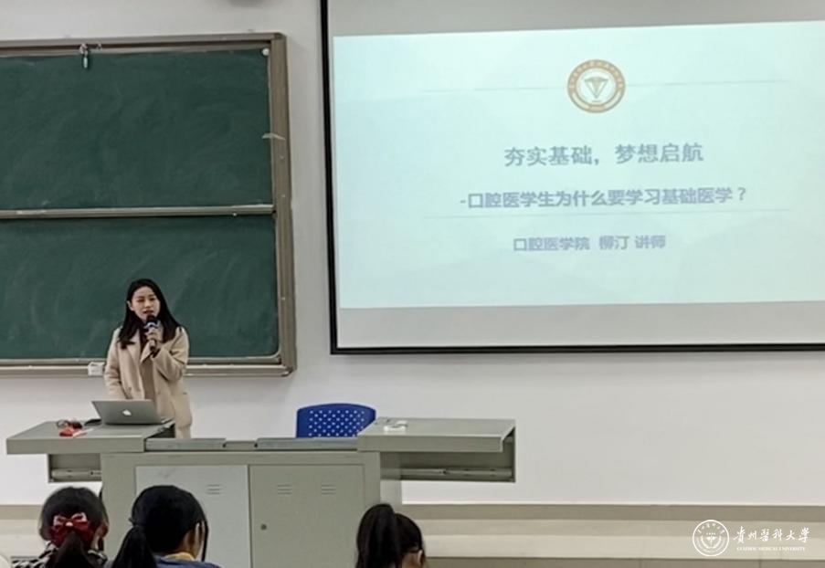 12月10日,附属口腔医院正畸科柳汀博士在7601为2021级全体同学进行了主题为“夯实基础,梦想起航”的宣讲,以培养大一新生掌握医学基础课程的正确学习观念。她表示医学基础课是每一个医学生必须学习和掌握的基础课程,只有掌握基础知识,才能为将来从事医疗工作奠定坚实的基础。