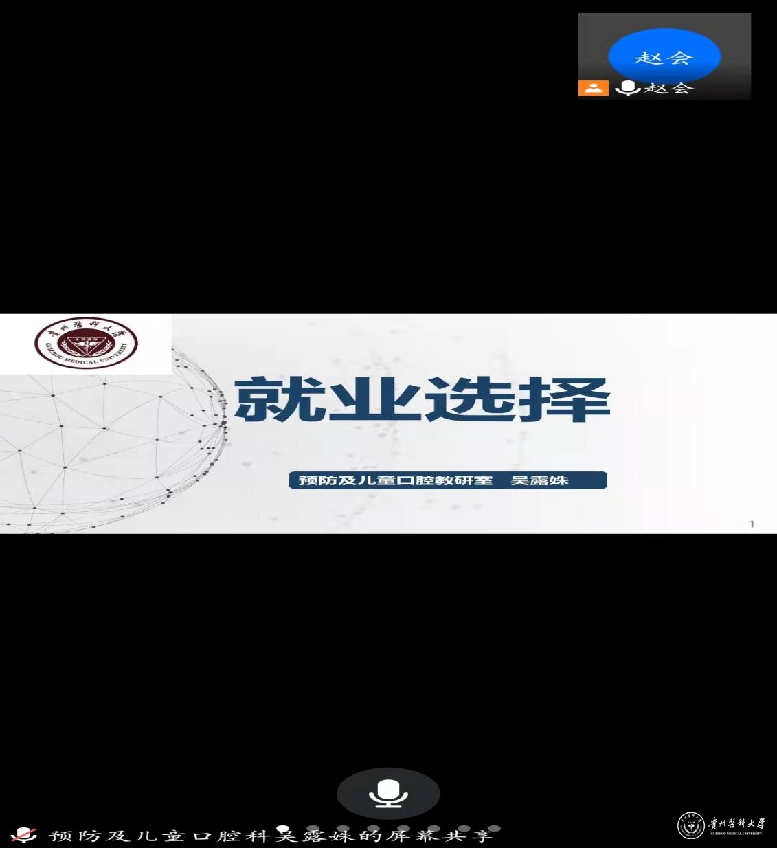 12月10日,预防及儿童口腔教研室吴露姝为口腔医学院2018级学生开展了主题为“毕业选择”的专题讲座,以进一步帮助同学们树立正确就业观,做好毕业就业选择,把握职业生涯中的主动权。
