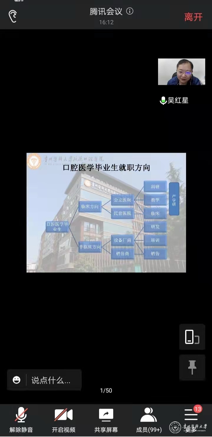 12月9日,设备后勤科科长吴红星为2020级学生进行了关于“口腔医学毕业生就职方向”相关知识的宣讲,以加深同学们对口腔医学专业就业方向的认识,引导学生树立正确的专业学习观念、职业规划意识。