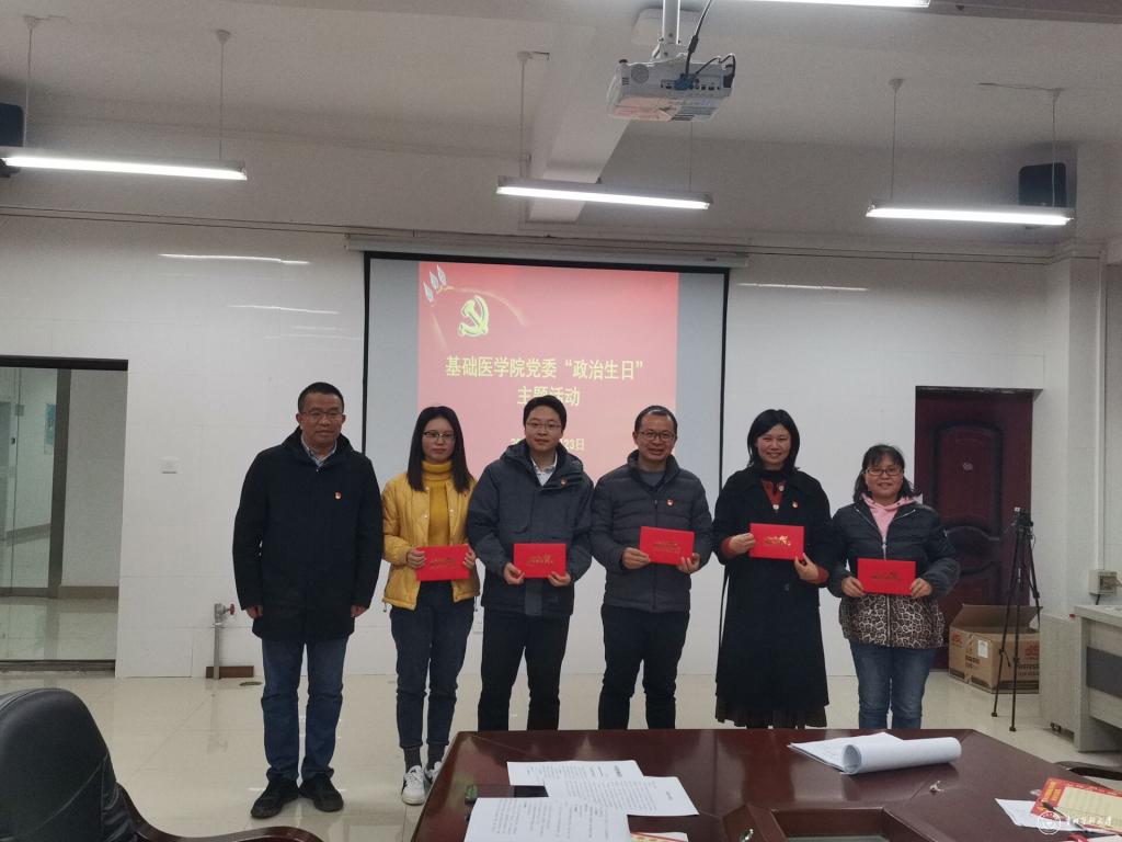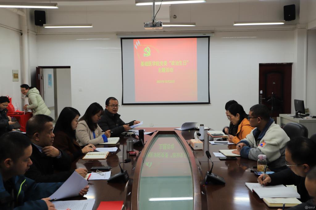12月23日,基础医学院党委在务本楼二楼会议室举行了党员集体“政治生日”仪式。基础医学院党委班子、各党支部书记、全体辅导员参加,学院副处级组织员刘亮主持。