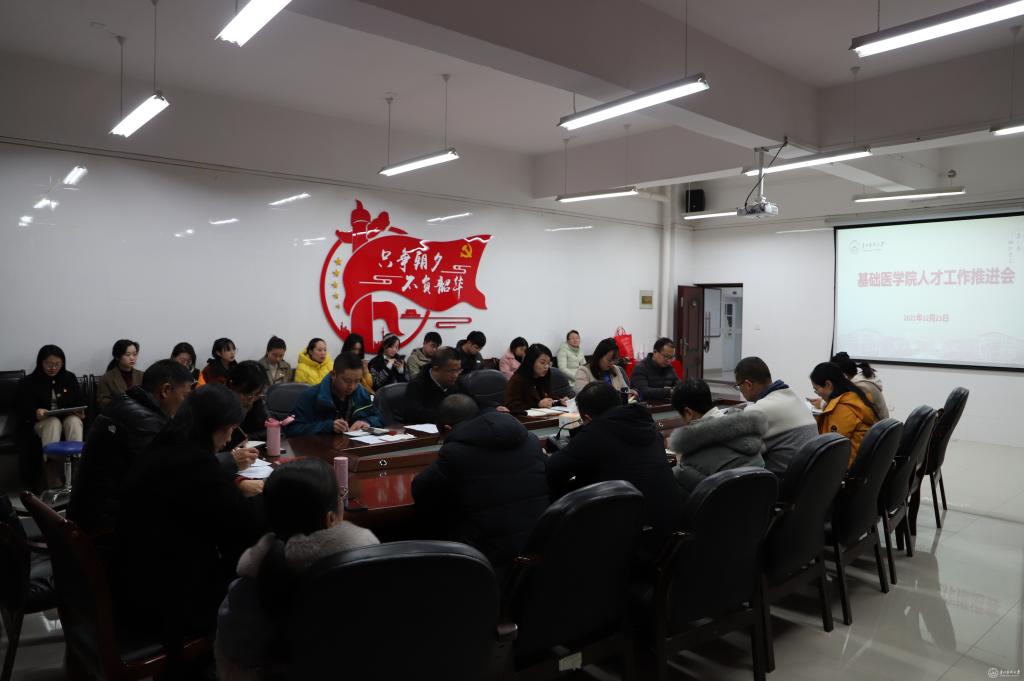 12月23日,基础医学院党委在务本楼会议室召开基础医学院人才工作推进会。院党政领导,各科室负责人,各党支部书记,全体辅导员参加。院党委书记王妤煜主持。