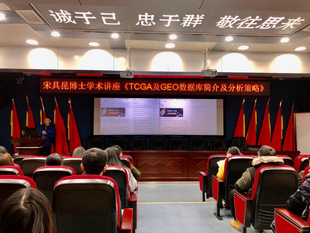 12月30日,口腔医学院开展以“TCGA及GEO数据库简介及分析策略”为题的学术讲座。此次讲座由贵州省人民医院宋具昆博士主讲,全院青年医(教)师以及研究生参会学习。研究生科研管理科副科长谭旭主持讲座。