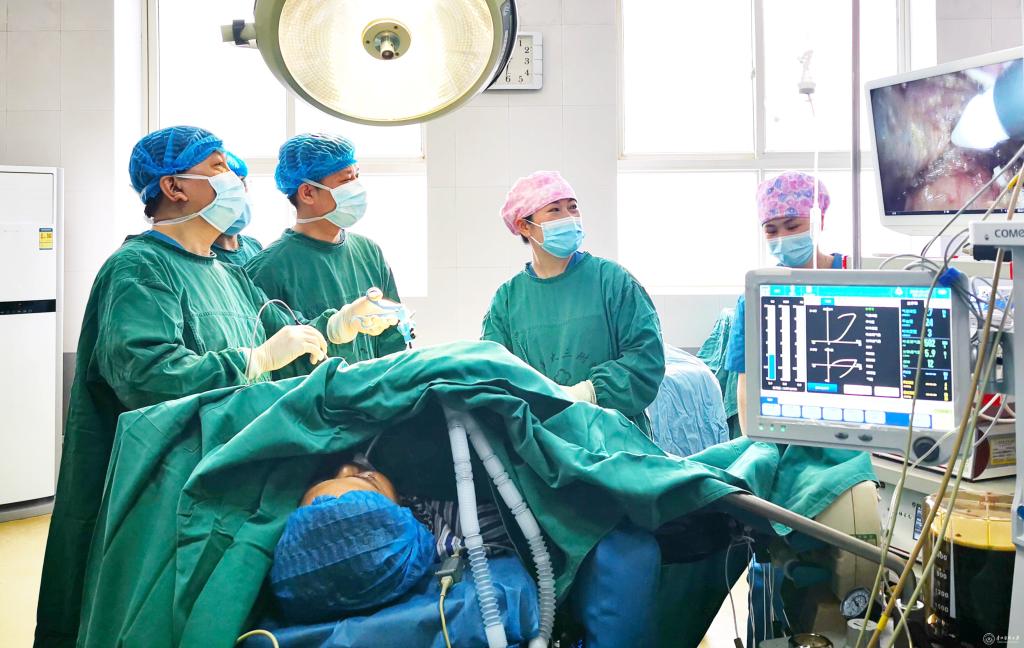 杨女士入院后,刘兴贵到普外科与她及家属沟通交流,了解相关情况。术前,刘兴贵组织普外科肝胆外科团队进行充分讨论,并根据杨女士情况确定最适合她的手术方案。