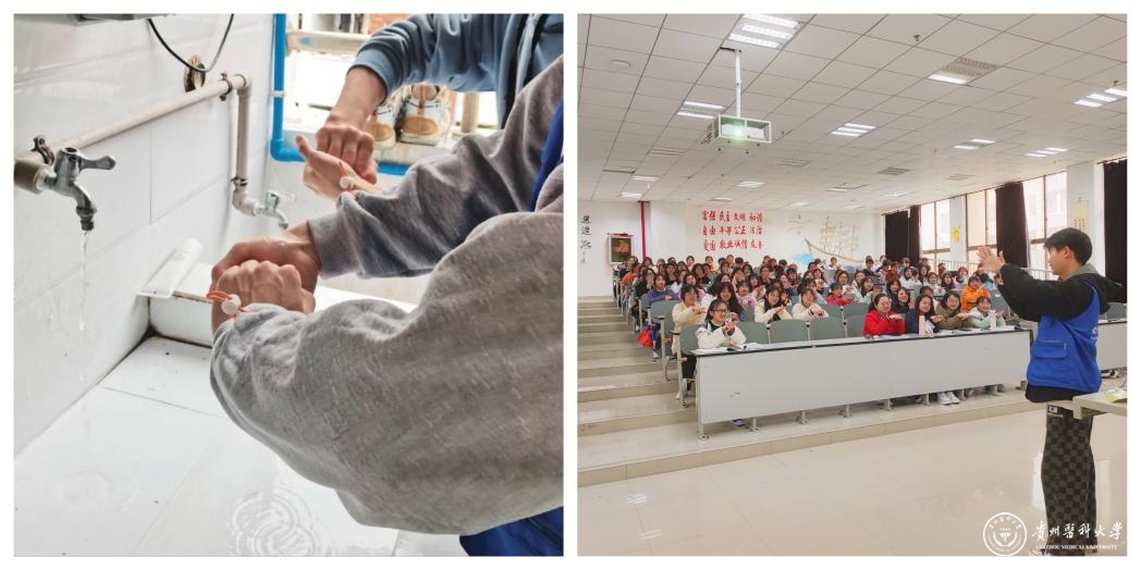 公共卫生与健康学党政领导班子走进学生寝室,向同学们科普结核病的传播过程,提醒同学们加强室内通风,养成勤洗手、不随地吐痰,咳嗽、打喷嚏时应用手帕或手肘捂/遮住口鼻,不面对他人。除此之外,学生会同学在寝室内现场教学“七步洗手法”,以期帮助同学们养成良好的卫生习惯。