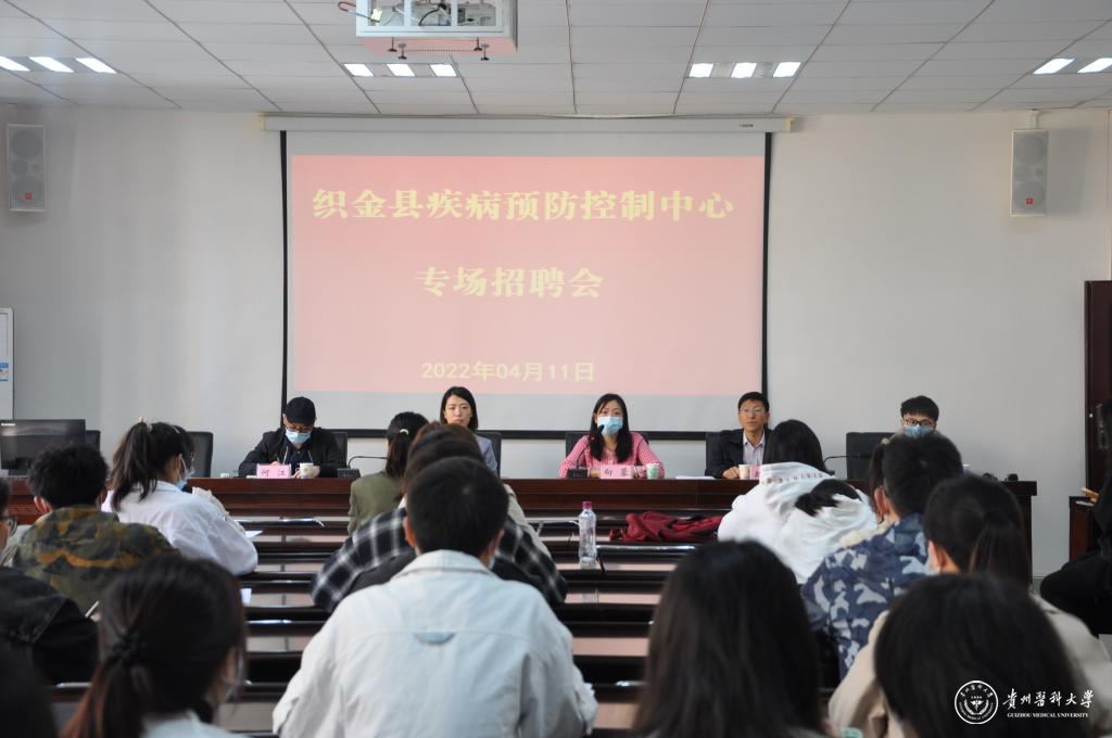 4月11日,织金县疾病预防控制中心在公共卫生与健康学院召开“春暖花开,岗为你来”专场招聘会。织金县疾病预防控制中心副主任向荣、党支部副书记赵训、办公室张以勋、学院党委书记郑维薇、副书记何江出席,毕业班辅导员、2022届相关专业毕业生参加。