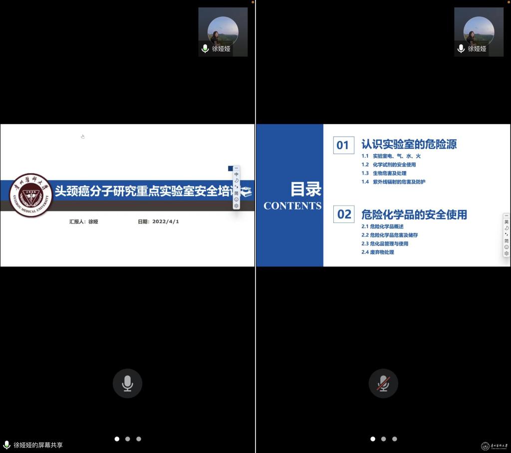 4月1日,口腔医学院采用线上培训的方式,组织开展了实验室安全教育培训。培训由实验室负责人毛岭主持,实验室技术指导徐娅主讲。实验室管理人员和在读研究生参会学习。