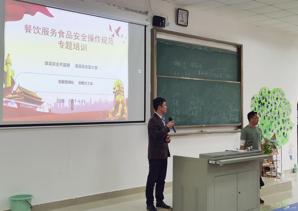 为持续巩固食品安全常态化管理,提高餐饮服务监管人员、食品安全员及食品从业人员的安全意识,落实食堂食品安全主体责任,规范餐饮经营行为,提升食品安全管理能力,保证师生舌尖上的安全。后勤管理处、后勤分工会与公共卫生与健康学院共同对食堂从业人员进行《餐饮服务食品安全操作规范》专题培训,该培训共分为四次进行。4月14日,公共卫生与健康学院副教授雷时成开展了第一次专题培训,后勤管理处班子成员、各食堂负责人、食品安全管理人员和从业人员160余人参加。