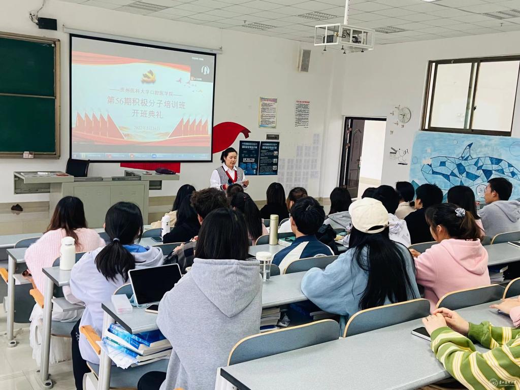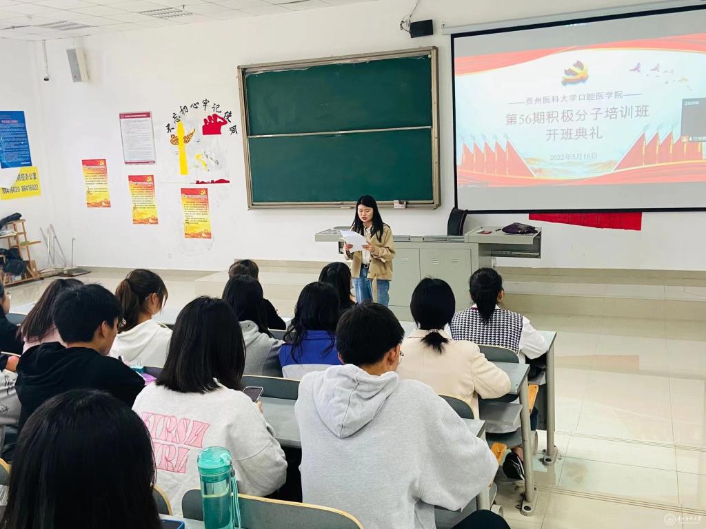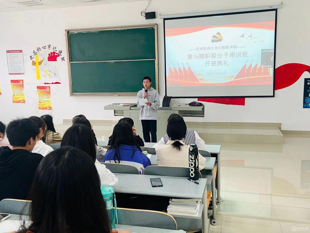 5月16日,口腔医学院第56期入党积极分子培训班在南校区明理楼7506教室开班。院党委副书记何雨羲、本科生第一党支部书记赵会、本科生第三党支部书记汪继蓉及85名入党积极分子参加。开班仪式由学院组织员陈培各主持。