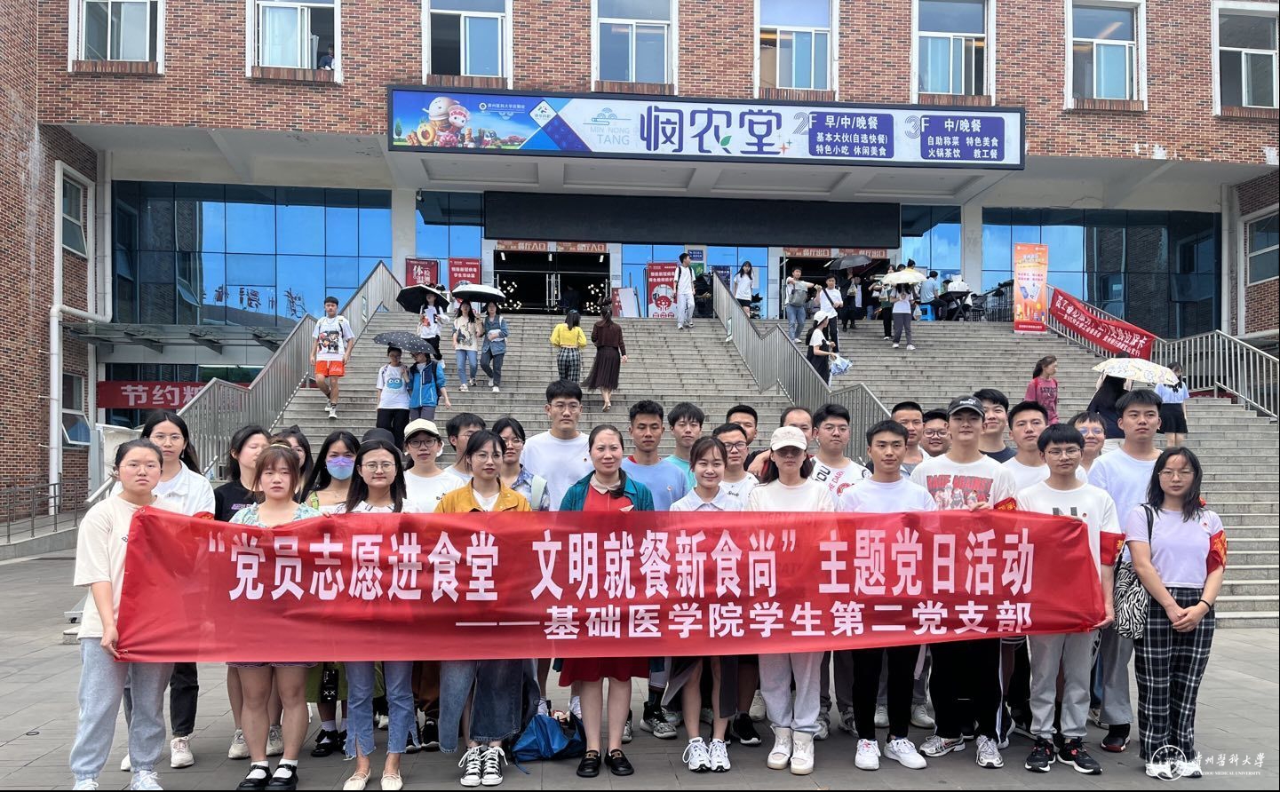 5月31日,基础医学院学生第二党支部在悯农堂开展“党员志愿进食堂 文明就餐新食尚”主题党日活动,支部所有党员、学生预备党员、发展对象参加。