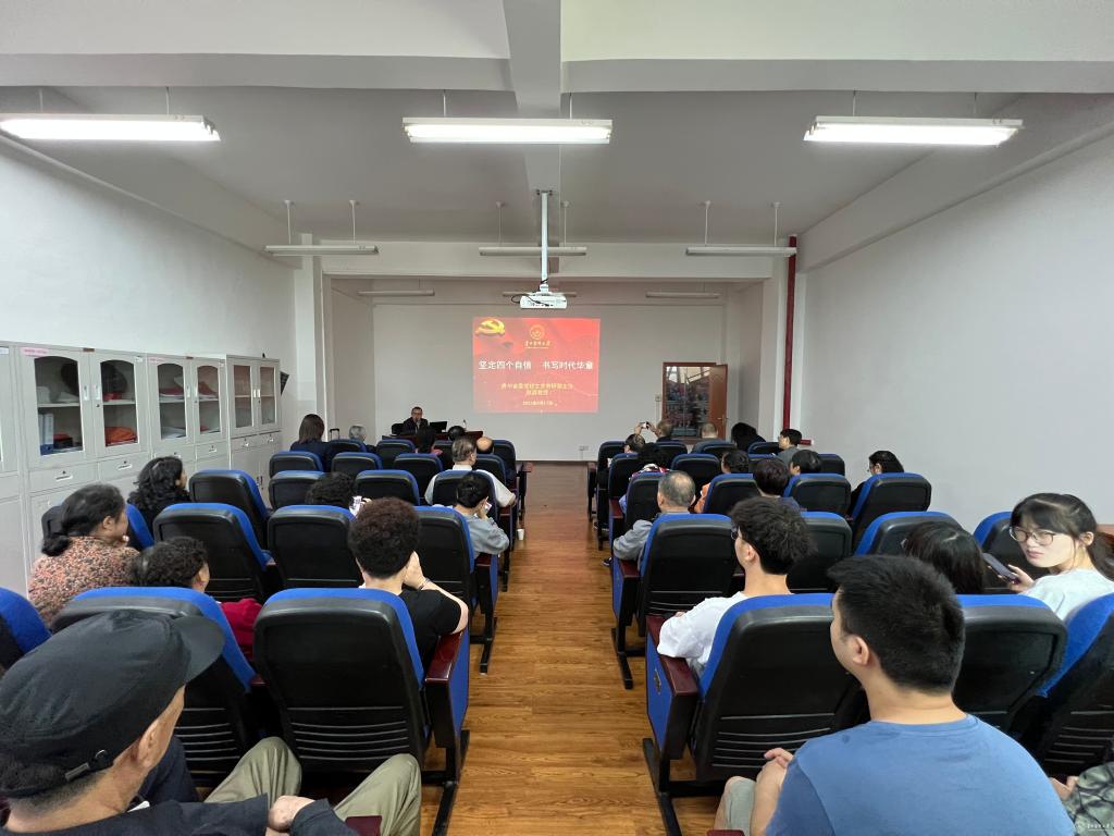 赵淼教授回顾了新中国成立70多年来中国经济社会的发展成就,结合党的十八大以来贵州“黄金十年”的发展,贵州这块土地上发生的巨大变化,深入浅出、旁征博引、饱含深情地从何谓“四个自信”、为何要坚定“四个自信”、坚定“四个自信”的底气何在等三个方面来分析阐述,强调只有坚定“四个自信”的科学信念,构建精神高地,才能形成强大的精神力量,最终实现中华民族的伟大复兴。要求党员干部、学生党员从党百年奋斗的历史经验中获经验受启发,把握历史经验的辩证法,始终坚定中国特色社会道路自信、理论自信、制度自信、文化自信,任何时候、任何情况下都要坚定不移跟党走。