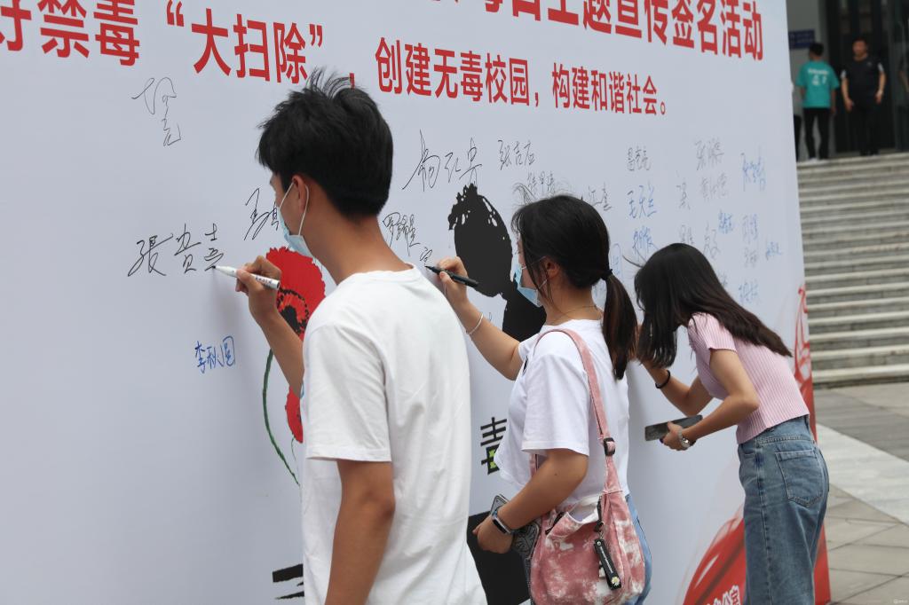 本次系列活动分为“健康人生、绿色无毒”主题签名、新型毒品与违禁药品知识宣传展示、我们的“国际禁毒日主题班会”、毒品预防专场讲座等环节。