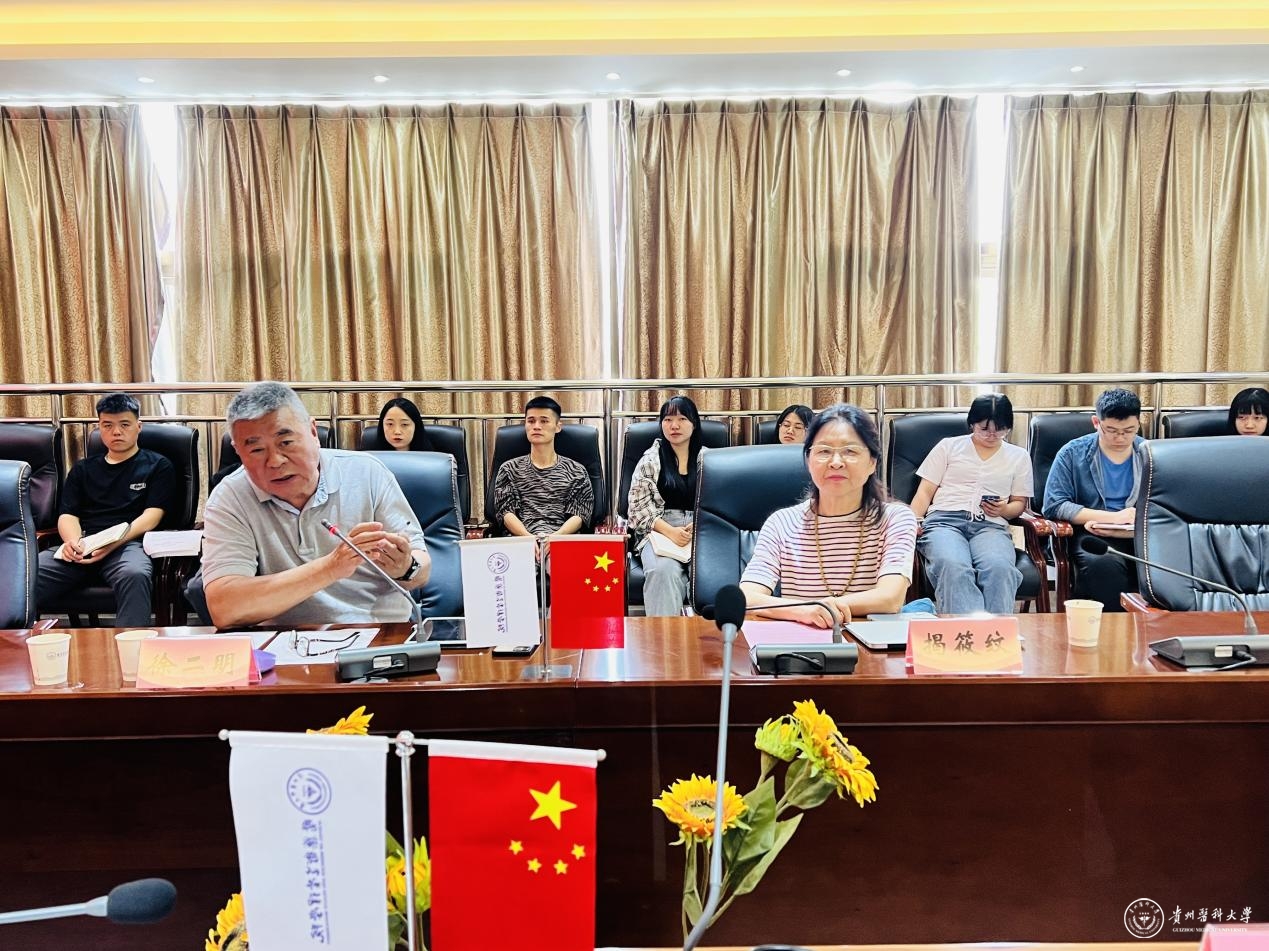 廖兴江介绍学院概况并就学院发展面临的突出问题听取了专家的建议。
