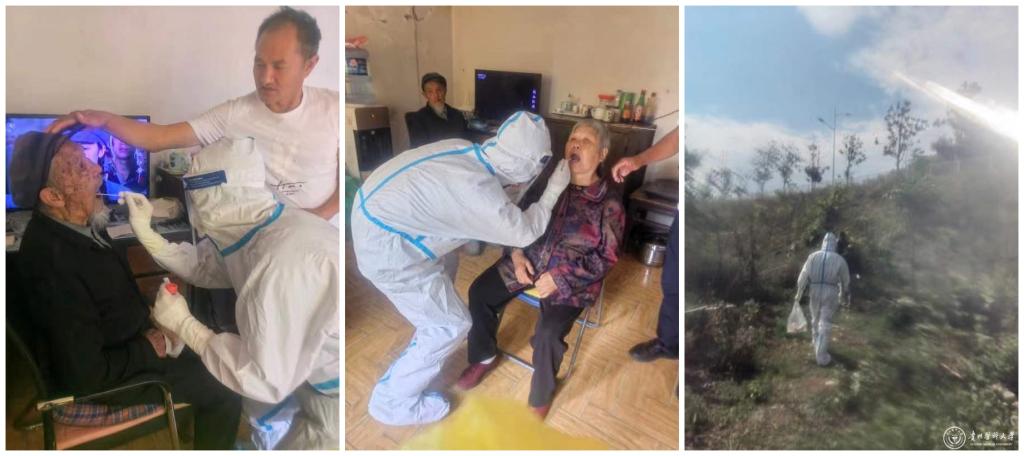 图:研究生2021第二党支部 罗乾友为贵安新区马场镇甘河村行动不便老年人上门采核酸