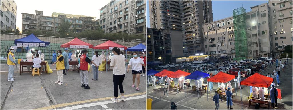 亮身份、践初心、当先锋。关键时刻党员同志充分发挥党员先锋模范带头阻击疫情的作用,配合核酸采样人员完成测温限流、秩序维护、登记引导等志愿服务工作,科普核酸检测、饮食建议、新冠疫苗等医学专业相关知识,形成抗疫最强合力,忠诚捍卫贵医师生的生命健康。党员志愿者们勇于吃苦、不惧风险,处处展示出“全院一盘棋”的大局意识和“抗疫必定有我”的奉献精神,使得疫情防控工作有条不紊的进行。