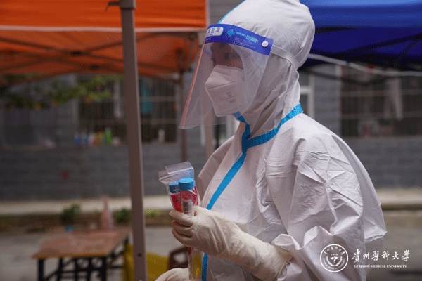 惠永鹏从9月15日起就一直通过辅导员向研工部 研究生院请战,不管是多细微的工作,不管是深夜还是清晨,只要有需要,他永远在第一时间响应。一开始是配合所在学生宿舍楼的工作人员做好核酸采集现场的检测人员签到工作,9月21日紧急招募第二批研究生“大白”时,他挺身而出火速响应,成为“大白”的一员。他说:“为了抗击疫情,各行各业的人都踊跃投身于这场没有硝烟的战争。作为一名医学研究生,作为一名共产党员,无惧艰险,勇于担当是我们的责任和使命,这一刻我感到从未有过的骄傲和光荣!与疫情抗争,为人民服务,就是青春最亮的底色。在疫情防控期间,我一定会发挥自己的专业特长,圆满完成学校交付的任务。虽‘疫’路艰辛,但我们万众一心,众志成城,我坚信最终战‘疫’必胜!贵医加油!贵阳加油!中国加油!”