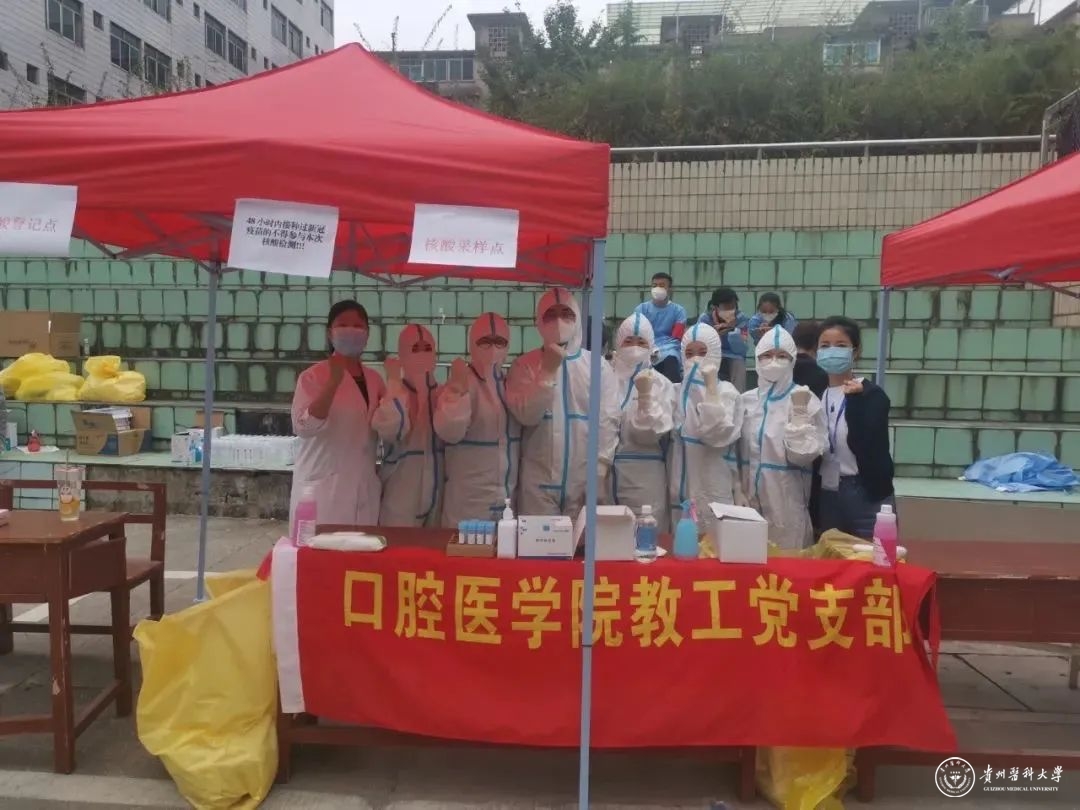 beat365唯一官方网站口腔医学院、附属口腔医院像杨晓春一样的教职工及学生还有很多。自贵阳疫情发生以来,beat365唯一官方网站口腔医学院、附属口腔医院接到为学校北校区、商专住宿点全体本科生、研究生、住培生、实习生核酸采集的工作任务,多名教职工及学生主动请缨,申请当志愿者,承担抗疫一线核酸检测、秩序管理、医用垃圾收集等工作。