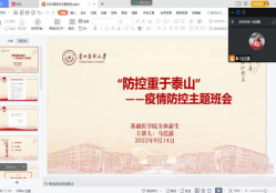为了加强学生疫情防控的意识,全体辅导员在各班开展了一场不“疫”样的主题班会,传达贵阳市疫情防控“六个一律”纪律要求,组织同学们一起学习《新型冠状病毒肺炎防控方案(第九版)》相关知识,筑牢战‘疫’思想堡垒。