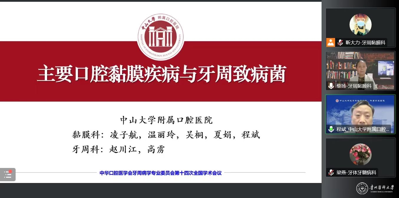 会上,程斌代表中山大学光华口腔医院向战斗在抗疫一线的贵医口腔同行表示慰问,并以“口腔黏膜疾病和牙周致病菌”为题作专题讲座,通过大量实验研究详细全面地介绍了口腔黏膜疾病与牙周致病菌之间的关系,通过生动的讲解使年轻医生及学生深入地认识了口腔黏膜疾病和牙周致病菌之间的关系,对临床及科研都有极大帮助。