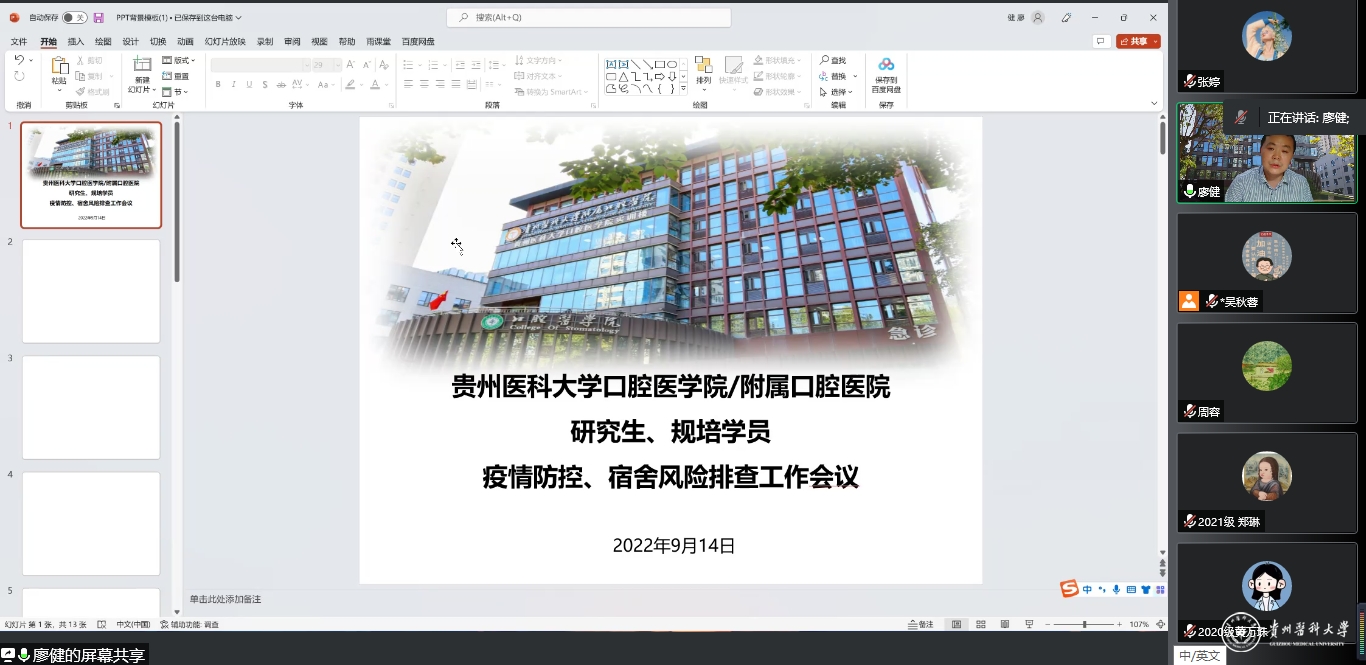 同时,为执行宿舍闭环管理措施、防止在此过程中出现交叉感染,毕业后医学教育管理科提前组织召开了“beat365唯一官方网站口腔医学院/附属口腔医院研究生、规培学员疫情防控、宿舍风险排查工作会议”。会上,毕业后医学教育管理科科长廖健再次强调了宿舍日常管理要求以及志愿服务注意事项,要求严格落实《beat365唯一官方网站附属口腔医院规培宿舍新冠疫情防控闭环管理方案》和《规培学员宿舍闭环管理监督检查记录单》的填写要求,每日由廖健负责监督落实情况。