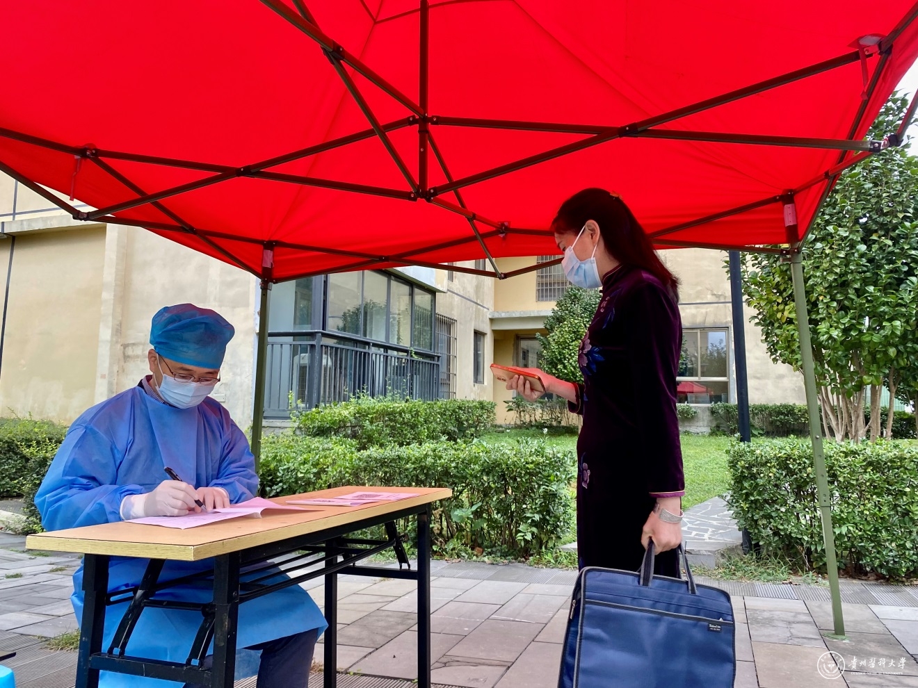 各尽所能、志愿支援,积极投入社会抗疫服务。疫情的到来,不仅让我们看到老师们兢兢业业,全力以赴,而且也看到同学们不遗余力、无私奉献的背影,抗疫期间,无论在哪,无论是谁,都为这场战疫的胜利,尽了自己的一份力量。居家办公教师主动请战,参与居住地核酸检测工作、分发抗原试剂等。心理学专业的教师利用专长,积极参与“贵州省教育系统疫情心理援助平台”志愿工作,为全省师生和广大群众提供心理援助,积极疏导师生和群众因为疫情带来的恐慌、焦虑等不良情绪。
