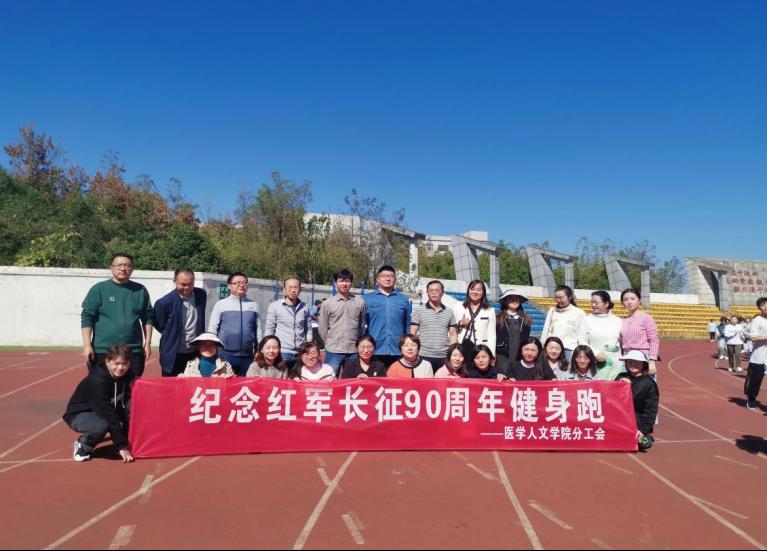 11月2日,医学人文学院分工会在南校区体育馆组织纪念红军长征九十周年健身跑活动。学院党委书记江宣成、院党委副书记张贤及各科室、中心老师参加了活动。