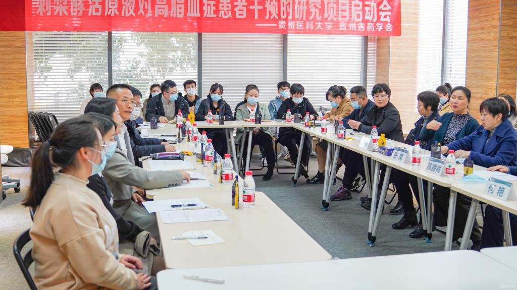 11月17日,《刺梨酵活原液对高脂血症患者干预的研究》项目启动会在beat365附属医院召开。贵州省工业和信息化厅食品工业处处长张凤、附属医院科研处处长陈腾祥、副处长何艳、药学院党委书记高秀丽参会。
