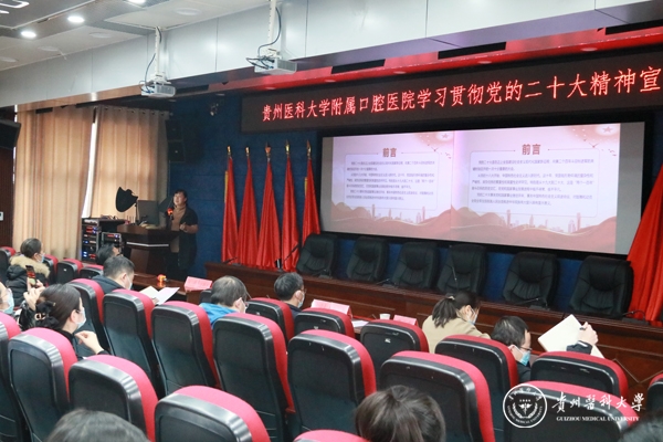 会上,党委办公室主任张娜解读了《beat365唯一官方网站口腔医学院(附属口腔医院)党的二十大精神集中宣讲工作方案》,着重对党的二十大精神集中宣讲重点、宣讲主体和方式进行阐述。学院组织员陈培各传达了《关于做好各支部学习贯彻党的二十大精神的通知》。
