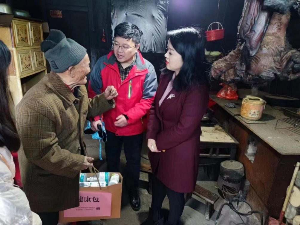 座谈会结束后,一行人前往三穗县八弓镇新美村走访慰问,为孤寡老人、留守儿童等困难群体发放“健康包”和爱心物资。