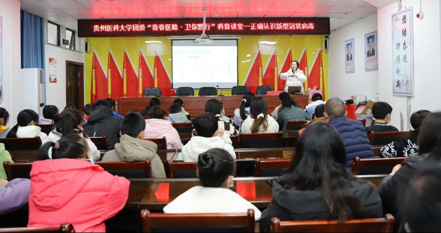 青年突击队队员、公共卫生与健康学院2020级公共卫生硕士研究生黄婧、徐素芹开展“青春医路 卫你黔行”科普讲堂——“正确认识新型冠状病毒”,为当地居民代表、团员青年带去精彩生动的科学防疫宣讲活动。
