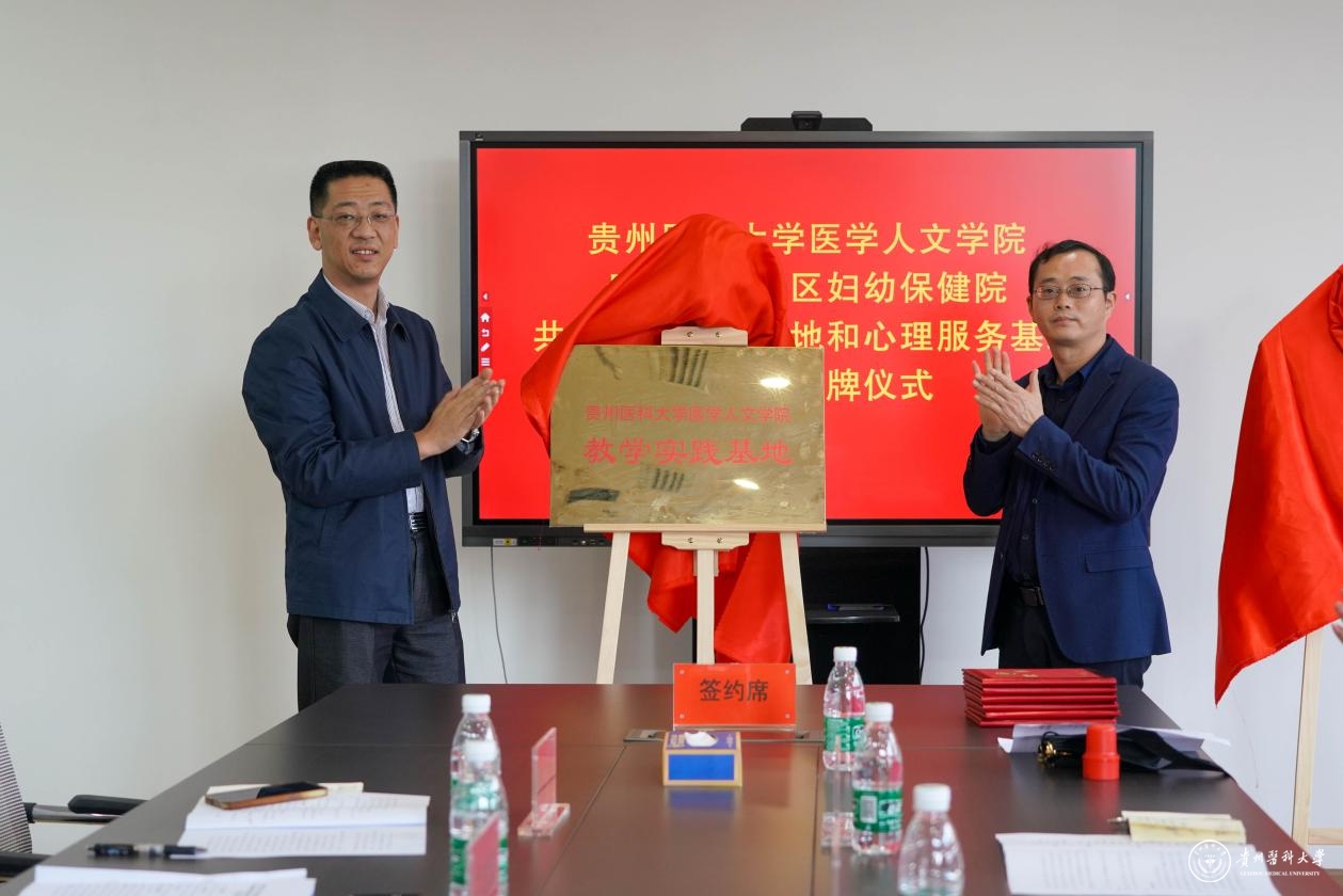 3月23日,beat365唯一官方网站医学人文学院与贵阳市南明区妇幼保健院合作共建教学实践基地签约及揭牌仪式在南明区妇幼保健院分院举行。