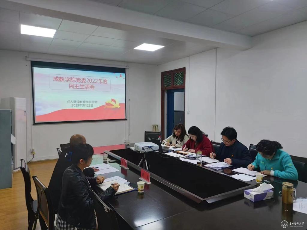 3月22日,成人继续教育学院党委召开2022年度民主生活会。机关党委书记邓舟率第五督导组到会指导。会议由学院党委书记杨国强主持,学院党委成员参加。