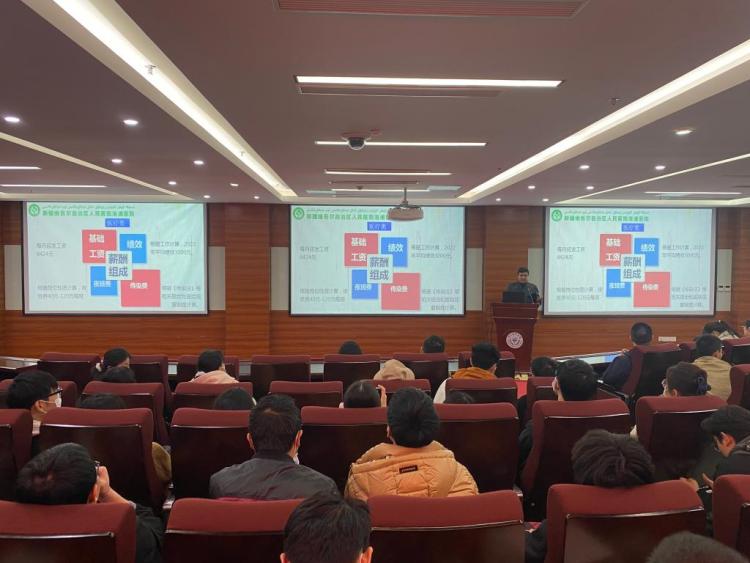 洛浦县人民医院人力资源部副主任阿卜杜曼南·阿卜力克木介绍医院的概况、岗位要求、工资福利、入职流程,并对同学们关心的问题进行详细说明。医院党政办主任高顶华分享自己作为贵州人扎根新疆的切身感受。