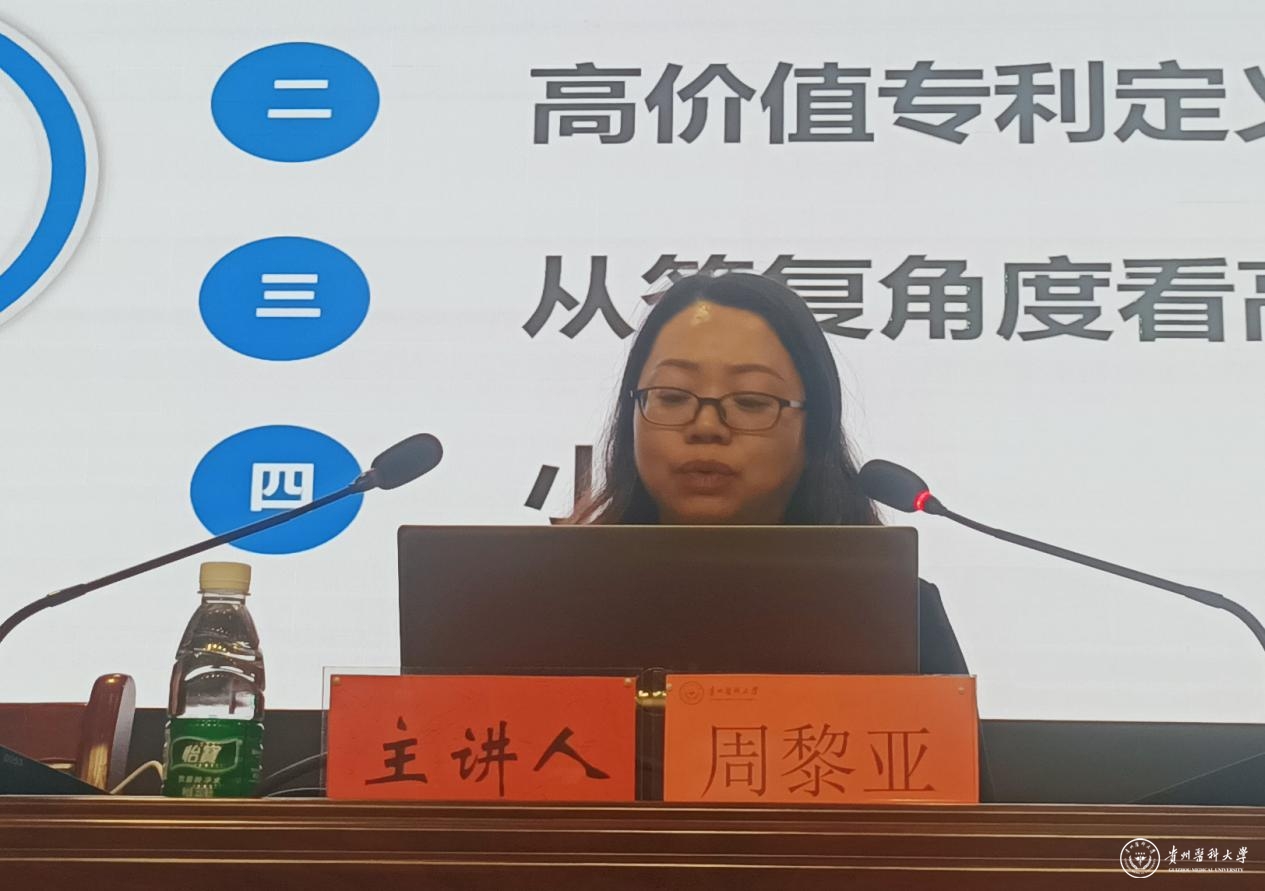 刘超对贵州省近年来贯彻党中央、国务院关于推进知识强国建设,提升知识产权创造、运用、保护、管理和服务水平制定的相关政策进行详细介绍和解读。重点讲解我省对高价值专利、国外专利的奖补政策及申报流程,希望beat365广大教职工生在高价值专利创造、运用等方面取得更大成绩,为建设知识产权强省贡献力量。